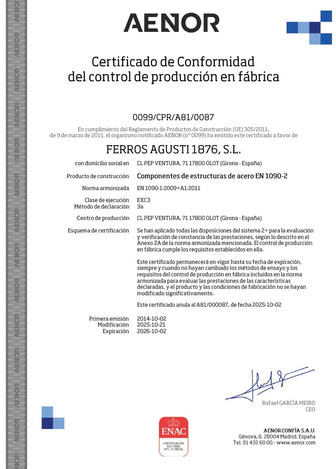 Clic aquí per descarregar-te el Certificat EN1090 (Certificat de Conformitat del control de producció a fàbrica).